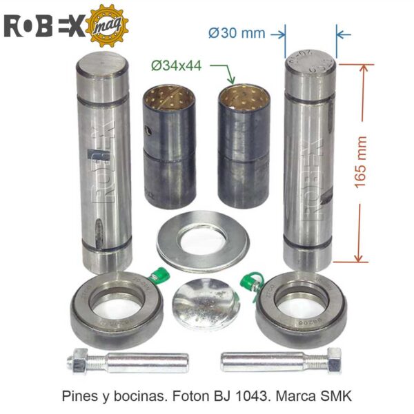El kit de pines y bocinas viene completo, con dos pines, cuatro bocinas, dos rodamientos, dos seguros y otros elementos que lo completan.