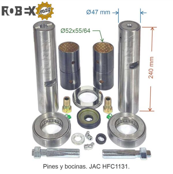 El kit de pines y bocinas viene completo, con dos pines, cuatro bocinas, dos rodamientos, dos seguros y otros elementos que lo completan.