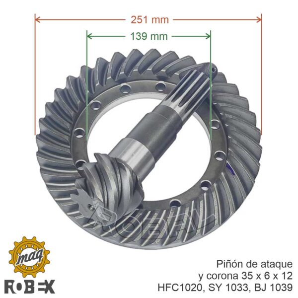 Piñón de ataque y corona para camionetas Jac HFC1020, Jinbei SY1033, Foton BJ1039.